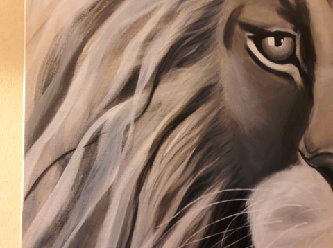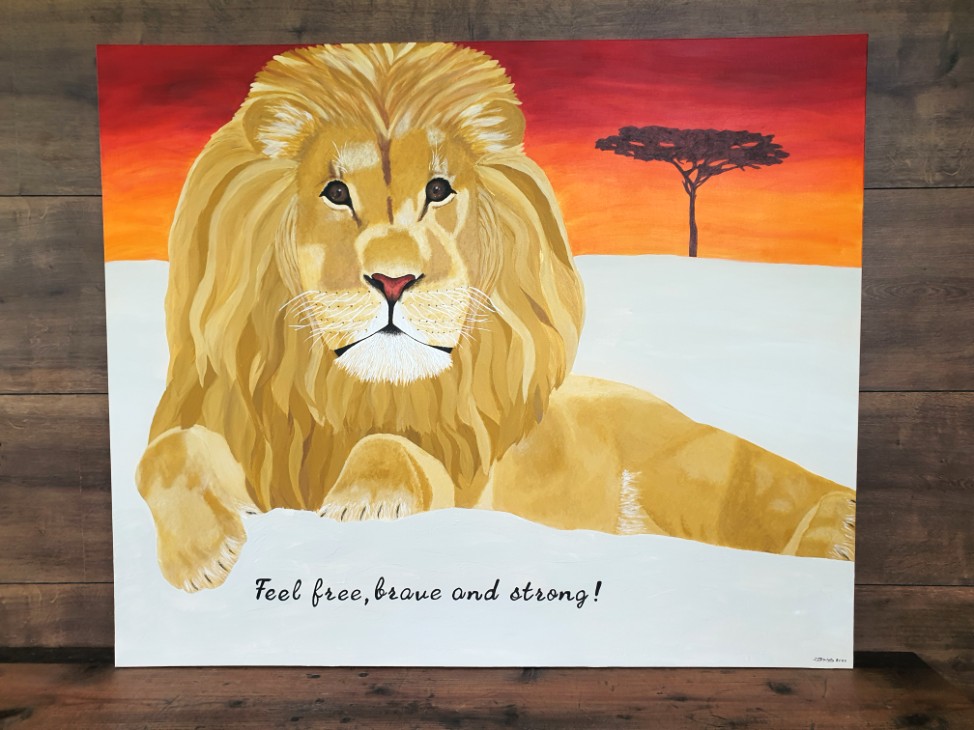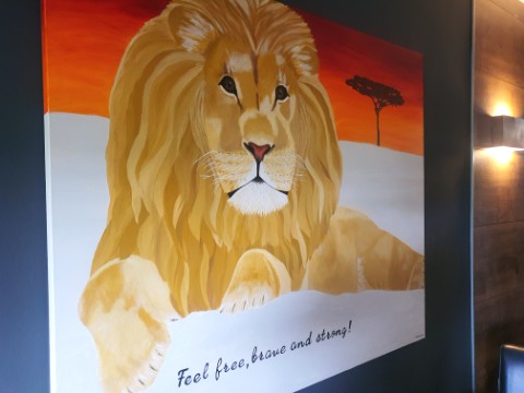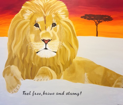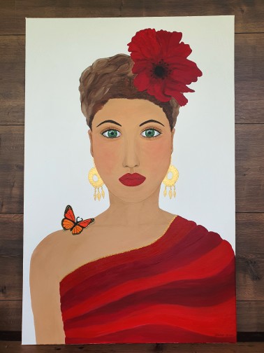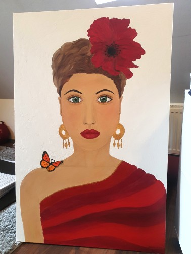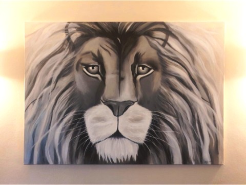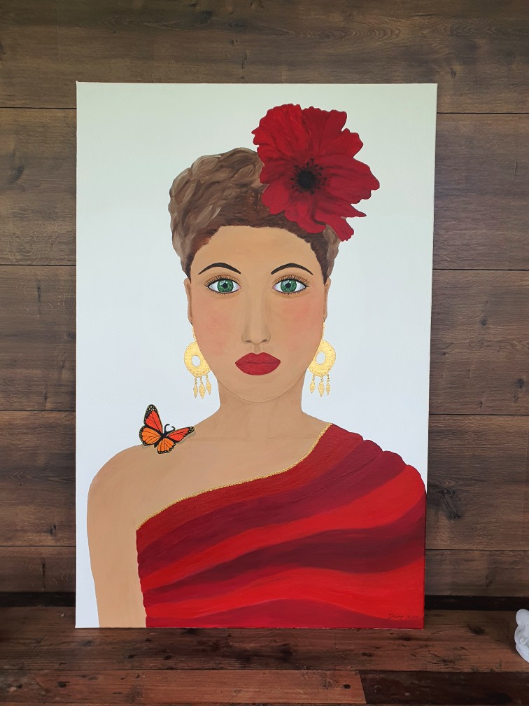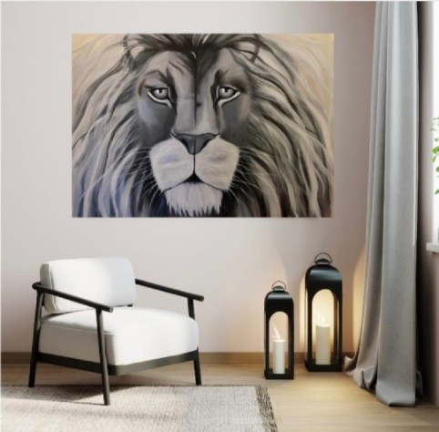 In der Größe von 120 cm x 100 cm lässt sie Ihren Charme wirken. Ein kleines Highlight ist auch das Piercing über der Oberlippe, welches aus einem Strasssteinchen be-