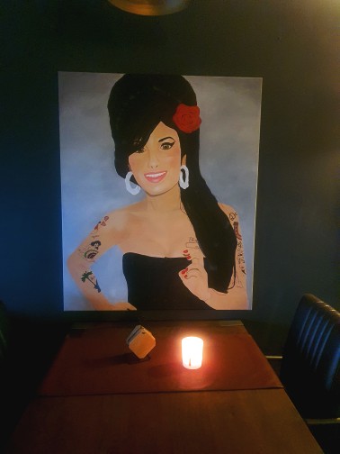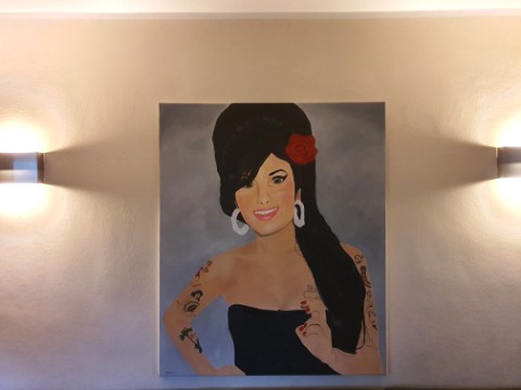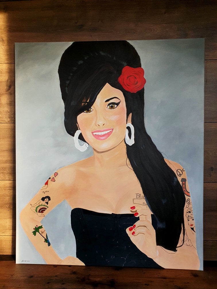 Amy Handgemaltes Acrylportrait der zeitlosen und charismatischen Sängerin Amy Winehouse. Sie zaubert Dir mit diesem Portrait ein Lächeln ins Gesicht und versprüht gute Laune!
